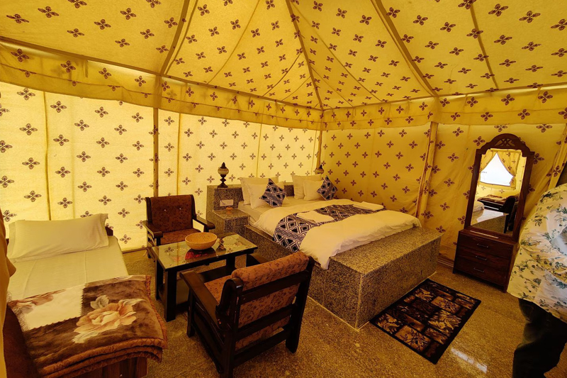 We had the best time at Saira Heritage Resort. The tents were amazing and really nice with a private bathroom. We went on a camel ride and a jeep safari and had so much fun. The evening entertainment was unreal and absolutely astounding. There were traditional musicians and dancers that kept us entertained. The food was cooked fresh on the spot and was so tasty. Beds were so comfy and the rooms impeccably clean. The buffet breakfast was delicious and plentiful. Sumar and his team are the best in the business by far.